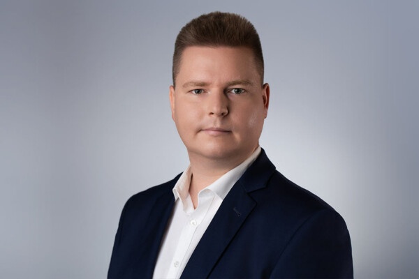 Sesja biznesowa odbyła się w sali konferencyjnej, gdzie rozstawiliśmy profesjonalny setup fotograficzny. Użyliśmy dwóch różnych teł – jasnoszarego oraz granatowego. Granatowy kolor został wybrany specjalnie, aby korespondować z identyfikacją wizualną firmy, która specjalizuje się w rozwiązaniach oświetleniowych.